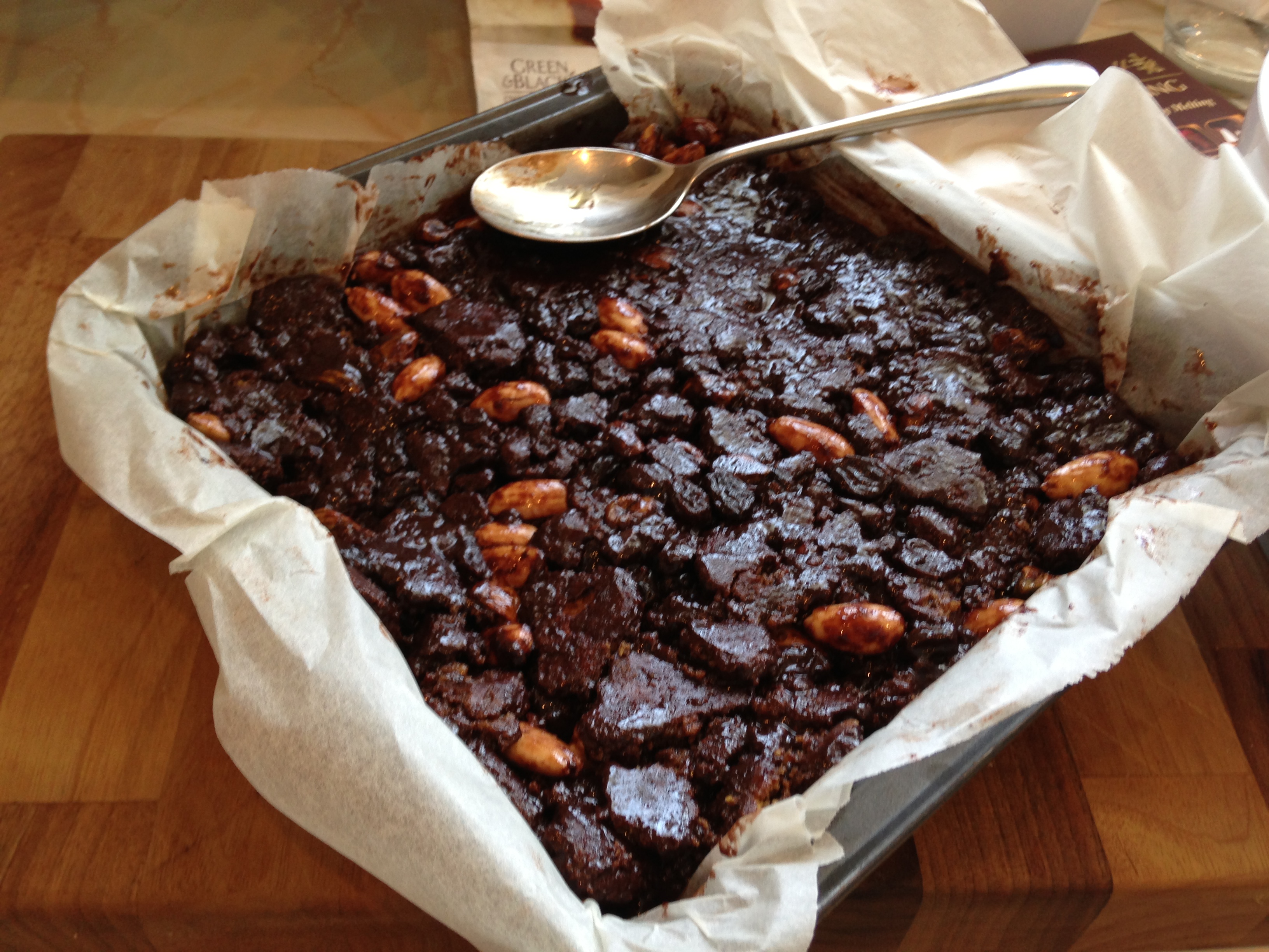 Clear a space in your fridge and in it goes for half an hour (the recipe says five to 10 minutes, which I don’t trust. Not that I think I know better than the Green & Black’s recipe designers – but they can’t be right all the time, can they?).